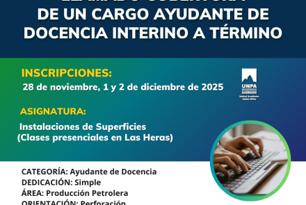 Más información en: https://www.uaco.unpa.edu.ar/278-ayudante-de-docencia-dedicacion-simple-area-produccion-petrolera