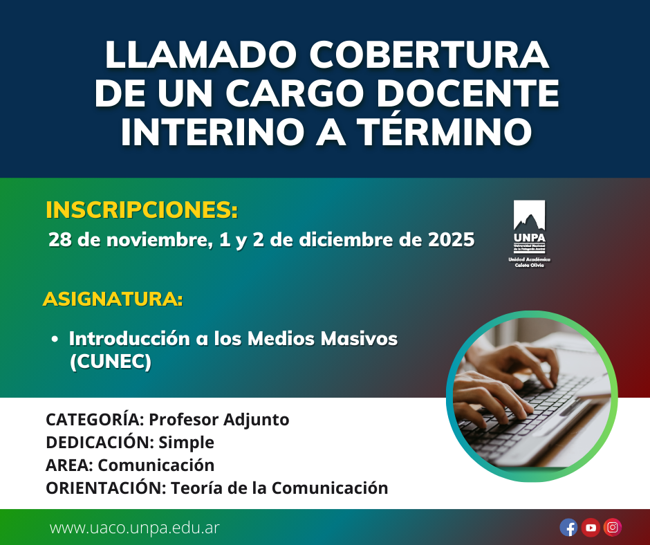 1. Contactar al Departamento Ciencias Sociales a sociales@uaco.unpa.edu.ar para informes y certificación de documentación probatoria.