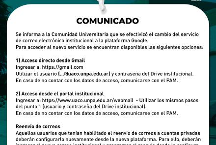 Se informa a la Comunidad Universitaria que se efectivizó el cambio del servicio de correo electrónico institucional a la plataforma Google.