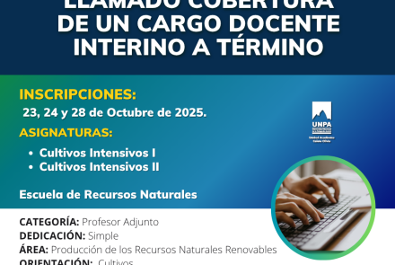 Más información en: https://www.uaco.unpa.edu.ar/249-profesor-adjunto-dedicacion-simple-area-produccion-de-los-recursos-naturales-renovables