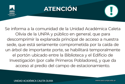 Información importante: Estacionamiento en el predio con acceso desde el portón de Primeros Pobladores