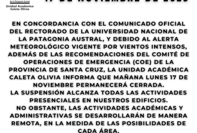 17 de noviembre: Cierre de los edificios de nuestra sede por alerta de fuertes vientos