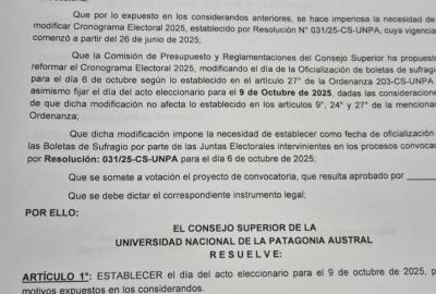El Consejo Superior de la UNPA definió que las elecciones serán el 9 de octubre
